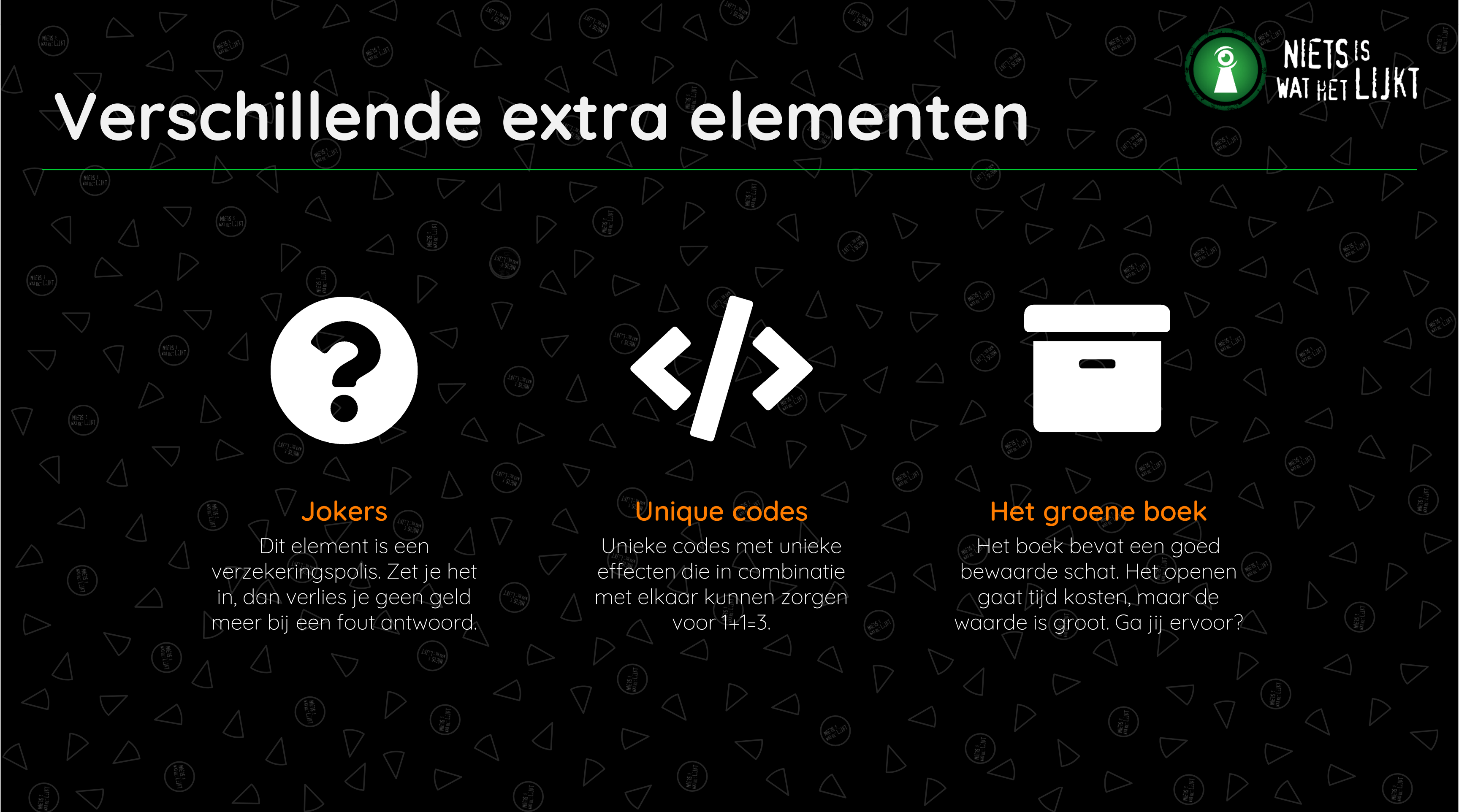 Je kiest zelf welke variant je speelt. In de korte versie zitten alle basiselementen van het spel verwerkt. Wil je meer spelelementen en langer spelen? Dat kan met de uitgebreide versie. Ga jij met je groepje voor geld of probeer je jokers te vinden, ruilen of kopen om toch de winst te pakken?